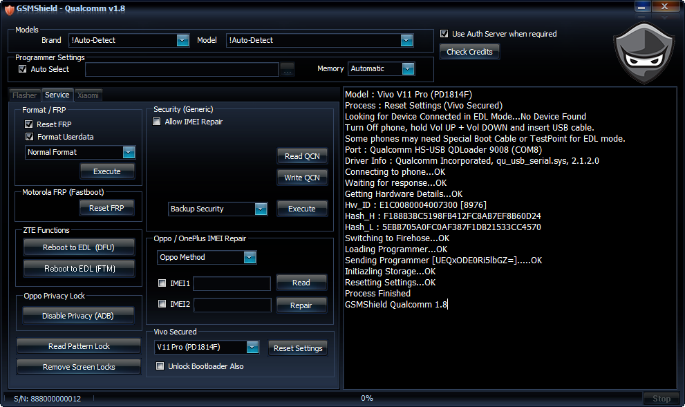 Vivo v11 pro pattern unlock without data loss done by umt qc fire v6.6 by the small prince details done.